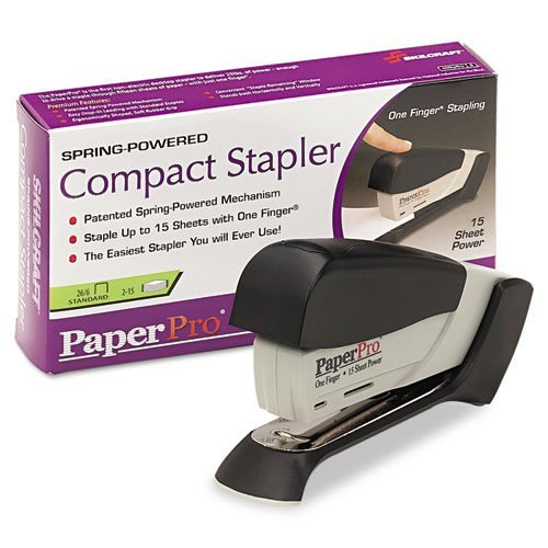 Delivers heavy-duty staple-driving power with the pressure of a single finger. Lightweight, power-assisted desktop staplers with ergonomic design and rubberized non-slip handle and base. Spring powered technology makes stapling up to 80 percent easier than traditional stapling. Refill with standard staples. Unique design allows horizontal or vertical placement for a smaller footprint. Made of durable plastic. Jam-free operation. Comes loaded with a sample strip of 125 staples.