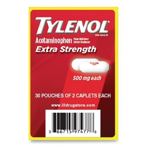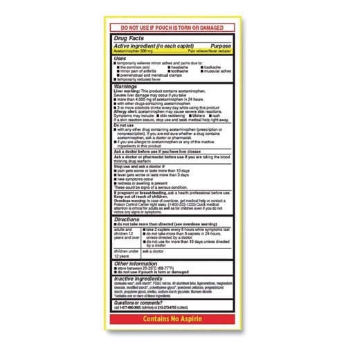 Acetaminophen, 500mg, Extra Strength Caplets, Refill, 2 /Packet, 30 Packets/Box
