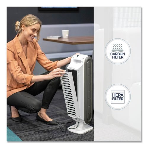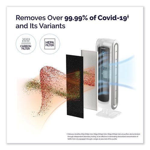 True HEPA filter with AeraSafe™ antimicrobial treatment safely removes 99.97% of airborne particles as small as 0.3 microns, including pollen, ragweed and other allergens, viruses, germs, dust mites, mold spores, pet dander and cigarette smoke.