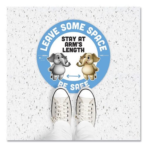 BeSafe Messaging Education Floor Signs, Leave Some Space; Stay At Arms Length; Be Safe, 12" dia, White/Blue, 6/PackBeSafe Messaging Education Floor Signs, Leave Some Space; Stay At Arms Length; Be Safe, 12″ dia, White/Blue, 6/Pack