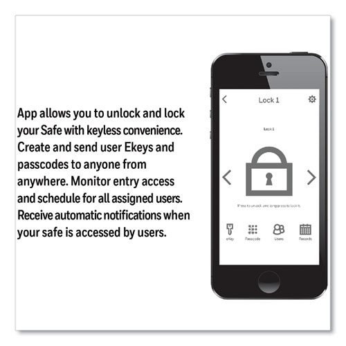 This security safe features Bluetooth enabled access via the Honeywell app, as well as customizable passcodes that can be used as another form of entry. The sleek touchscreen features a large screen with digital numbers and icons that illuminate when touched. Temporary or permanent codes and eKeys can be created to share for multiple user access. For audit control, the Bluetooth signal sends instant alerts to administrator when codes or eKeys are used to gain entry to the safe. In the event of an emergency, this digital safe also comes equipped with two unique manual keys. The durable design of this electronic safe has a scratch-resistant and powdered-coated finish with two motorized locking door bolts. The edge of the door is curved to bolster resistance against theft. The interior features a base carpet and an LED light strip. A removable shelf has been included for enhanced storage capacity. For additional security, an optional bolt down kit can be used to secure the Bluetooth safe to a stationary surface.