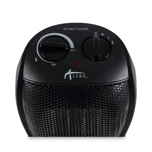 The lightweight table-top heater is ideal for easy portability. Air is heated by an efficient ceramic heating element and then circulated around the room by a fan. Adjustable thermostat up to 1500-watt heating output. Designed with safety in mind with overheat auto-shut off protection, tip-over safety switch, and a cool-to-the-touch plastic housing. Quiet heat or fan-only setting for all-season use.