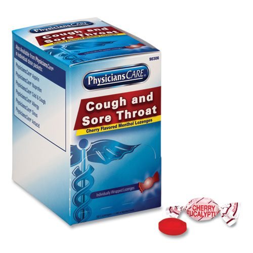 Cough and Sore Throat, Cherry Menthol Lozenges, Individually Wrapped, 50/Box