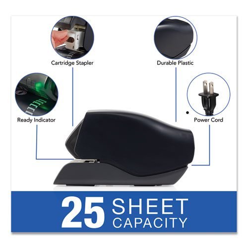 Desktop Cartridge Electric Stapler with LED Guide, 25-Sheet Capacity, Black