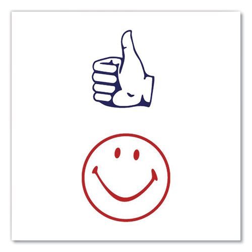 Dual Message Pre-Inked Round Stamp, Smiley Face/Thumbs-Up, 0.63″ dia, Red/Blue