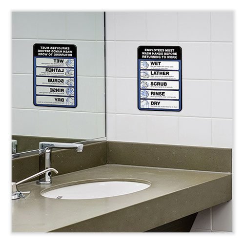 Employees Must Wash Hands Indoor Wall Sign, 5″ x 7″, Black/Blue/White Face, Black/Blue Graphics, 2/Pack
