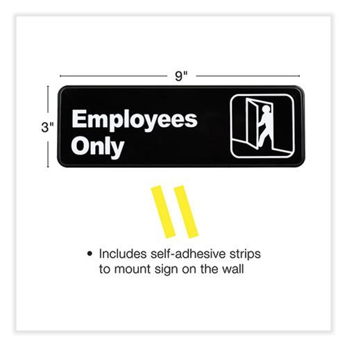Employees Only Indoor/Outdoor Wall Sign, 9″ x 3″, Black Face, White Graphics, 3/Pack
