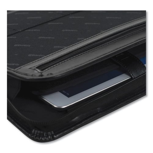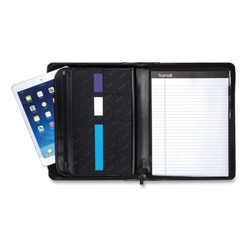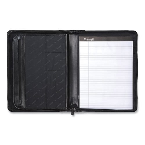 Leather Zipper Padfolio w/Writing Pad, Organizer Slots, Black