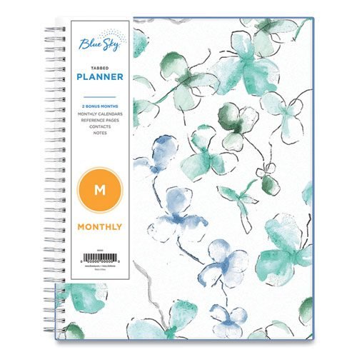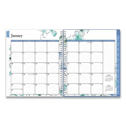 Lindley Monthly Planner, Lindley Floral Artwork, 10 x 8, White/Blue/Green Cover, 12-Month (Jan to Dec): 2024