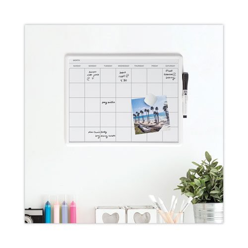 Magnetic Dry Erase Monthly Calendar, 14 x 11.66, White Surface, White Plastic Frame
