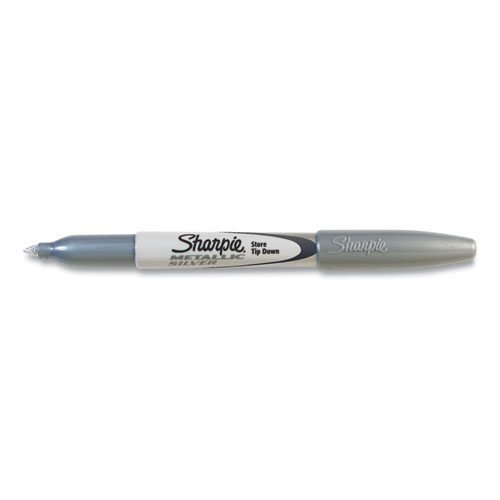 Metallic Fine Point Permanent Markers, Fine Bullet Tip, Metallic Silver, Dozen