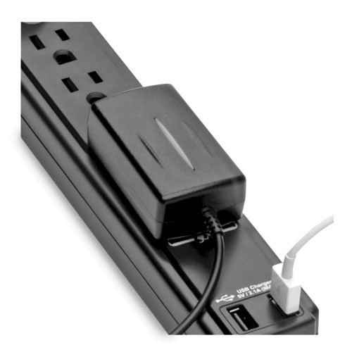 Protect It! Surge Protector, 6 AC Outlets/2 USB Ports, 6 ft Cord, 990 J, Black