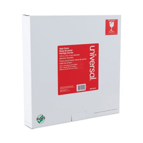 Round Wood Wall Clock, 12.75″ Overall Diameter, Cherry Case, 1 AA (sold separately)