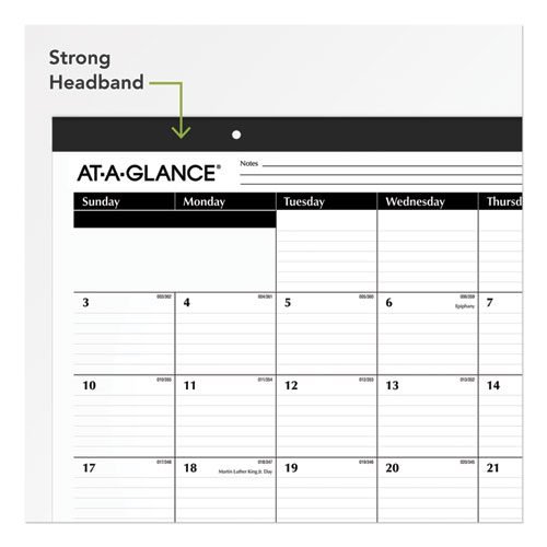 Ruled Desk Pad, 22 x 17, White Sheets, Black Binding, Black Corners, 12-Month (Jan to Dec): 2024