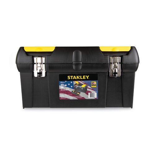 Handy toolbox lets you organize small tools and supplies while also providing open storage so your larger tools have plenty of room to take along. Two lid organizers provide easy access to small parts—no need to open the tool box. Built-in padlock eye for small locks keeps contents secure. Tote tray inside safely stores smaller items. Soft, wide rubber-coated handle allows for an easy and comfortable grip. High-impact plastic construction with nickel metal-plated latches.