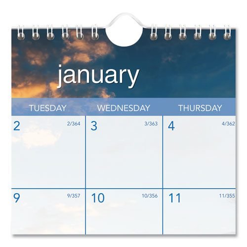 Travel to a different tropical locale every month — this calendar is sure to brighten your spirits with its full-color images. One month per page with unruled blocks; past and future months reference. Chipboard backing; wirebound with hanging loop. Printed on high-quality, recycled paper containing post-consumer recycled material.