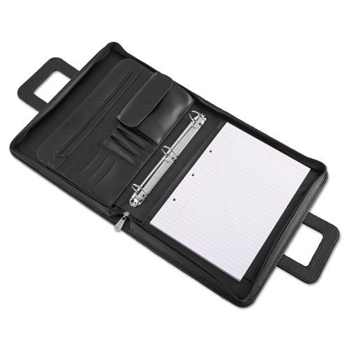 Zip-Around Padfolio, Vinyl, 14 1/2 x 2 1/2 x 11 1/2, Black